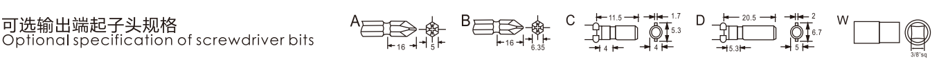 | 型號(hào) | 扭力范圍 | 空載轉(zhuǎn)速 | 輸入電壓 | 重量 | 標(biāo)準(zhǔn)批頭 | |